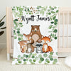 Woodland Animals Baby Boy Name Blanket with Eucalyptus Leaves