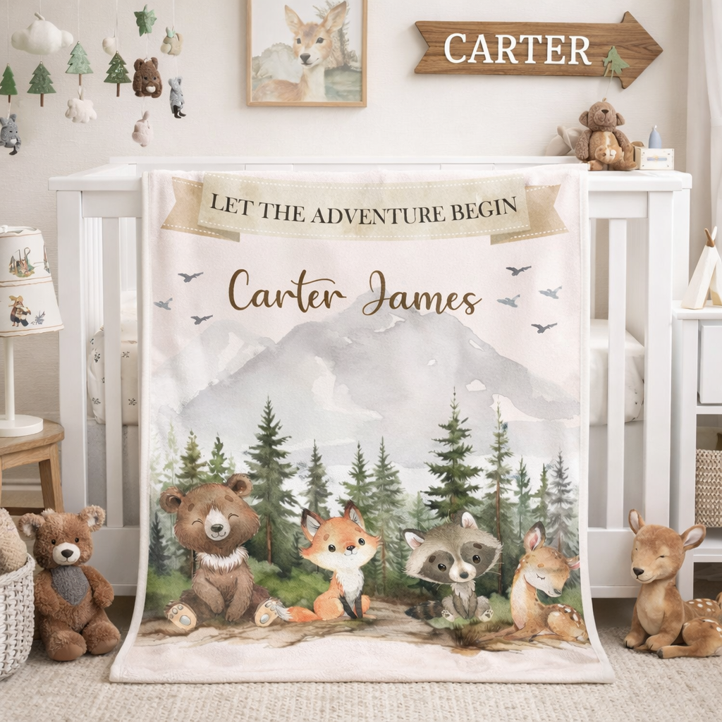 Personalized Woodland Animals Blanket - Let the Adventure Begin